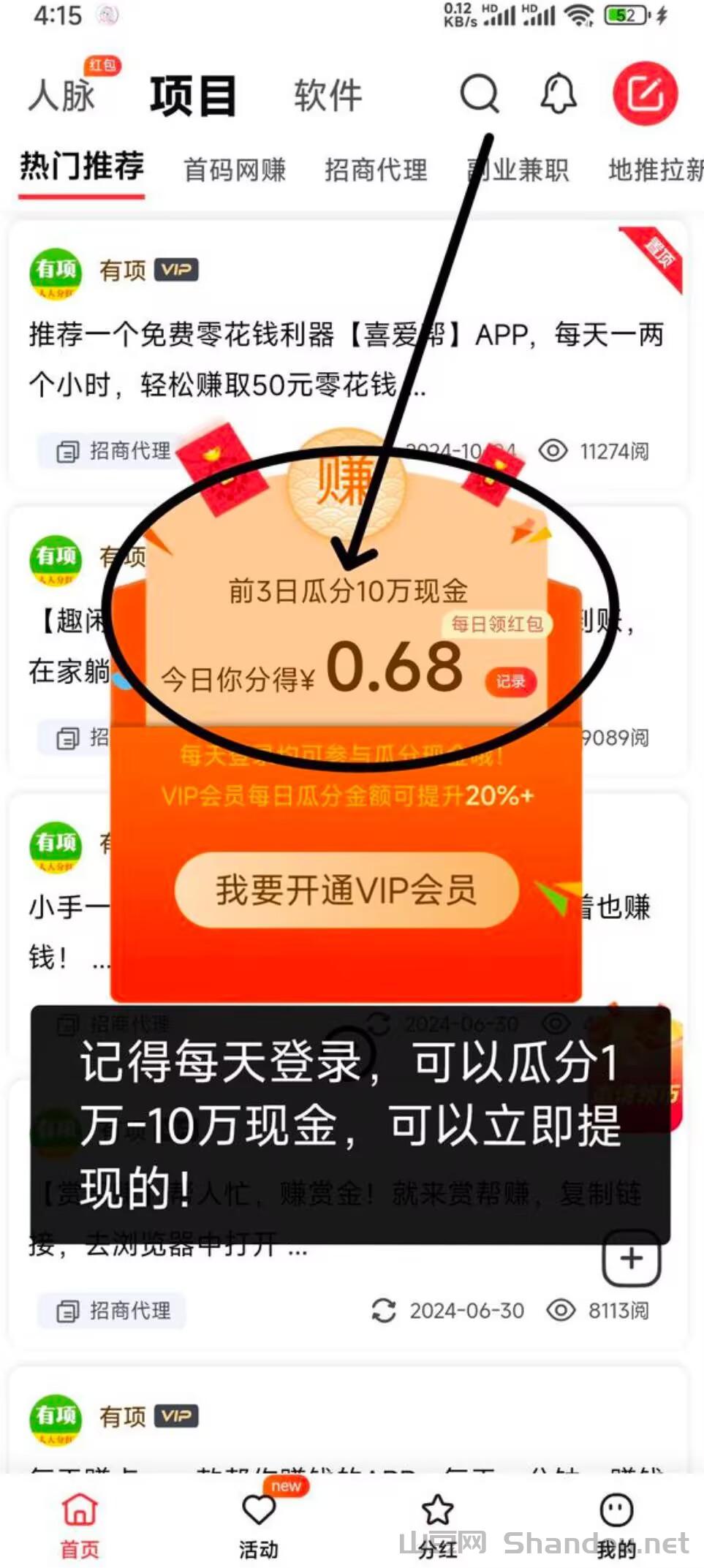 《有项》钻石芬洪,新用户注册致富宝秒提1个洪包+送1个钻石,可立即参与分洪,钻石越多芬洪越多。