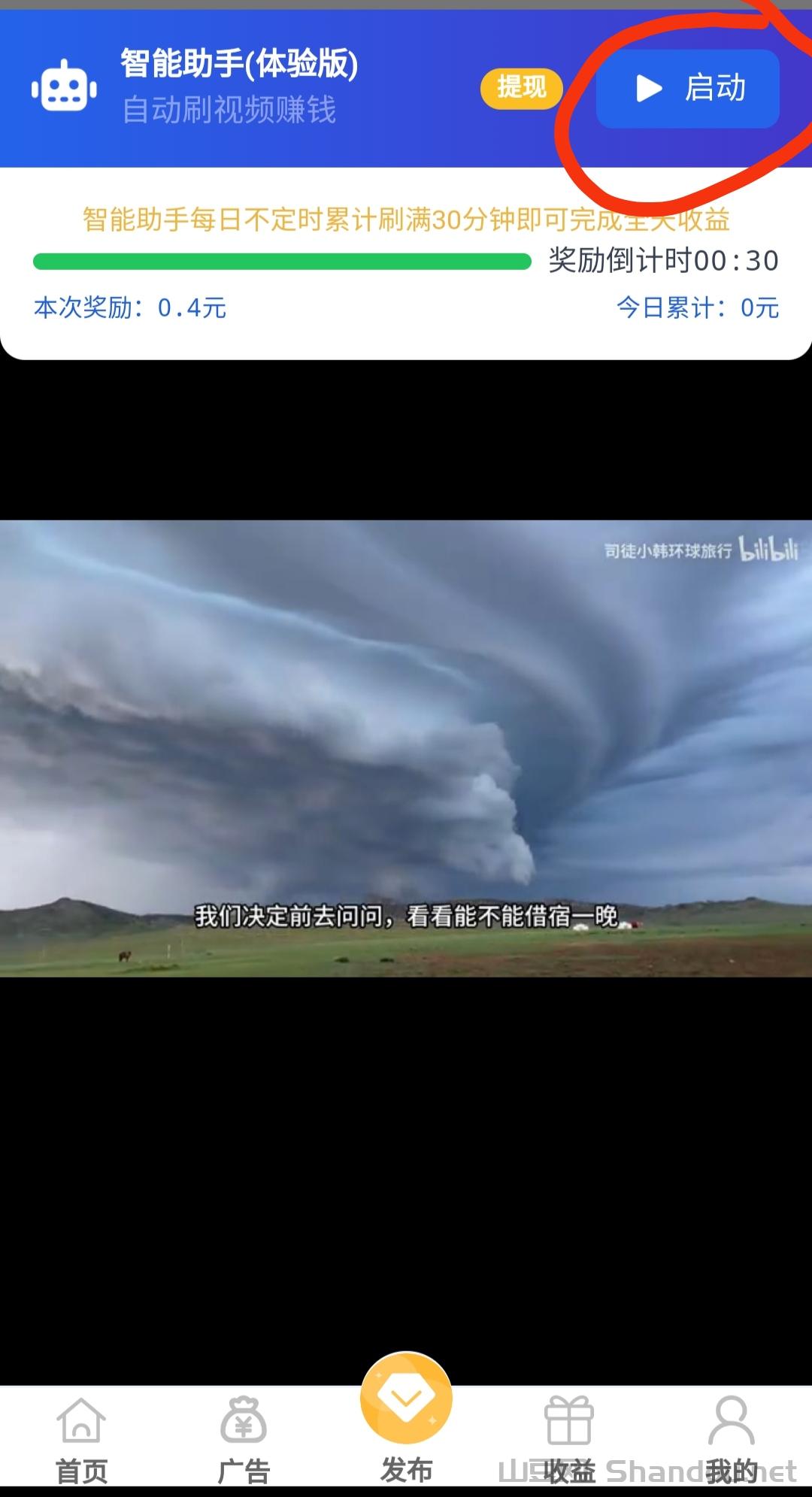 轻触“一键启动”按钮,智能助手即刻为你开启赚米之旅,每日仅需投入半小时刷阅小视频