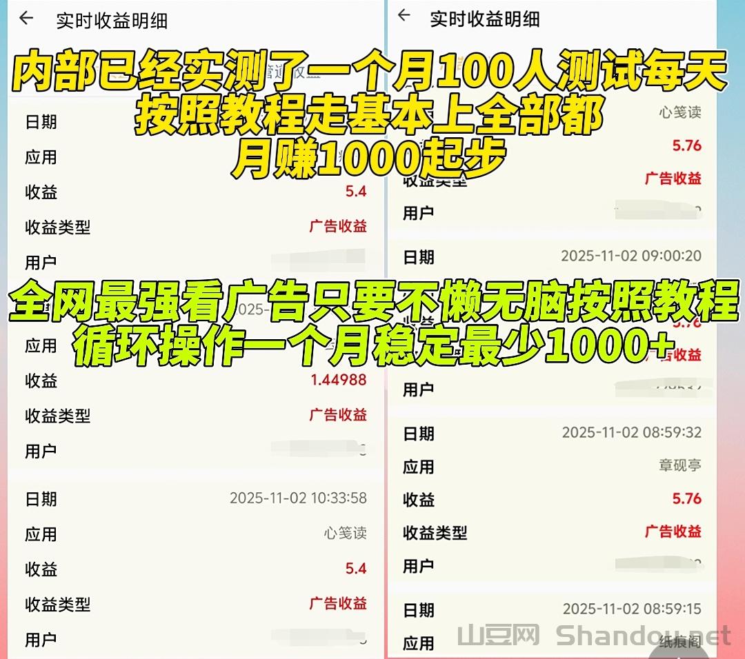 只要按照固定操作教程走基本上稳定日赚50~200+,浏览广告内容赚米全网独家