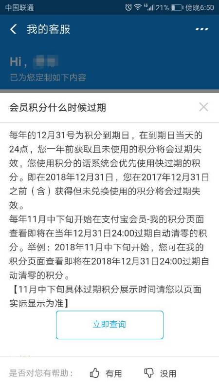 1,每年的12月31日为积分到期日,在到期当日当天的24点,你一年前获取且未使用的积分将会过期失效,即在2020年12月31日,你在2019年12月31日之前(含)获得但未兑换使用的积分将会过期失效。